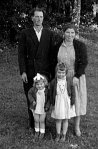 Na sliki šest je res družina Stražiščar iz Stražišča. Ata Franc, mati Frančiška, spredaj hčerki Marija in Blanka.