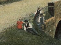 Ja, razglednice so ročno barvali še daleč v šestdeseta leta. Z vatko, pomočeno v razredčen tuš so pobarvali nekaj površin. Navadno je zadoščala zelena, modra in opečnato rdeča.