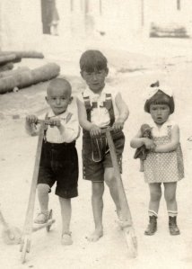 Verjetno je fotografija nastala v nedeljo. Otroci so lepo oblečeni in čisti. Mi nismo bili takšni.