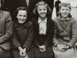 Od leve sedijo: Milka Cimermančič, Anica Suhadolnik iz Kožljeka (poročena Petrič v Cerknici), tovarišica Justi Rode, Ivanka Kavčič iz Bezuljaka, Majda Debevec iz Bezuljaka, Anica Jager iz Topola (poročena pri Krajnčih v Begunjah – Debevec).