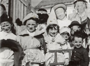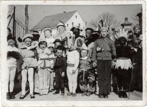 Dimnikar je bil takrat bolan. Tista s punčko je zagotovo Mihoučkova Bojana (Kranjc). Levo od nje je v drugi vrsti Klemenova Marja. Zajec levo od dimnikarja je Mihoučkov  Janez (Kranjc).