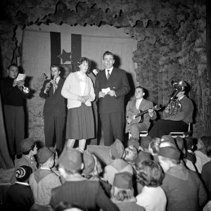 Proslava je bila prav zaresna. Debevc Franc – Vikleč in Jankotova Zdenka – Strgulec sta napovedovala. To potrjuje tudi lestek v napovedovalčevih rokah.Ansambel ima primerno zasedbo za kakšno narodno zabavno vižo: