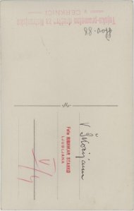 Na hrbtni strani je žig avtorja:”Foto Ribnikar Stanko Ljubljana”.Tudi ta fotografija je del zbirke Tujsko prometnega društva. Ima število 88.