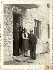 Na fotografiji je glavni vhod v pisarne gradbenega podjetja Gradišče. Še danes je vhod na istem mestu, le stavba je dobila omet in okolica je urejena.
