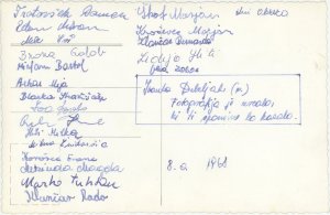 Zadaj stojijo: Marjan Škof (Dolenja vas), Marjan Kraševec, Rado Klančar (Osredek), Marko Tuhtan (Cerknica), Domen Trotovšek (Cerknica), Franc Gornik – Žitko (Cerknica), Franci Korošec (Begunje), Miran Petan (Cerknica), razrednik Vinko Toni.