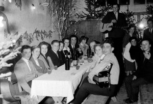 Prostor so okrasili z zelenim smrečjem. Oprema je bila bolj skromna. Sedeli so na klopeh, mize so bile bolj za veselico, na steni pa celo visi gola žarnica. Prepričan sem, da jih to ni motilo in na fotografijah izgledajo veseli, zadovoljni in razpoloženi.