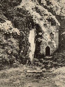 Razglednica je dvodelna, na levi strani je znan pogled na grad, na desni pa zid pri izviru, katerega namena ne poznam. Je bila tu elektrarna?