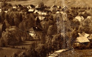 Razglednica je izdelana v toplem tonu, ki ni bil ravno pogost. Fotograf se je dvignil po pobočju Ranca reber, da je v jutranji svetlobi lahko zajel osrednji del Cerknice z Jezerom in Javorniki v ozadju.