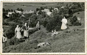 Sama se spomnim, da sem še kot majhna punčka dobila majhne grablje, ki sem jih morala s seboj vzeti na njivo. Skupaj z mano so rasle tudi grablje. Vsaki dve ali tri leta sem dobila nove, daljše za dva zoba. Oče jih je kupil od Ribnčana kar na našem dvorišču.
