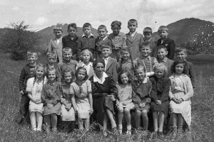 4. razred osnovne šole Stari trg se je slikal na travniku poleg šole s svojo učiteljico ga. Ireno Premk.