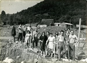 Tretja z leve bi bila lahko pokojna Rezka Dondčeva s Knežje njive, poročena s Pavlom Martinčičem, za njo pa prej Stane Razdrih kot Tone Hace. Oba sta delala v livarni. Staneta mogoče čez rame drži Ivan Hribar iz Igavasi. Tretja z leve je mogoče Marija Kraševec iz Dan, delala v montaži…Zadaj v ruti bi bila lahko Ivana Modic, Rugljeva mama iz Markovca, delala je v livarni. No, jaz sem prišla v fabriko šel čez dve leti, tako da seveda nisem čisto prepičana, vem pa da je tistih 120 ur udarniškega dela leta 1967 delala tudi moja mama.
