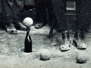 Ta gostilna sicer ni imela balinplaca, vendar so možakarji radi balinali, kjerkoli je pač naneslo. In naneslo je, da so balinali kar v prahu, morda celo v blatu na dvorišču zadaj za Zabukovčevo gostilno, zato so čevlji prav lepo umazani.