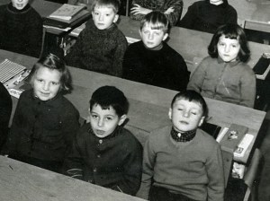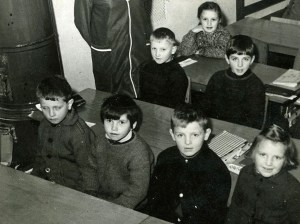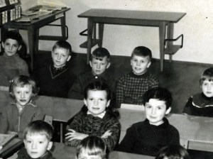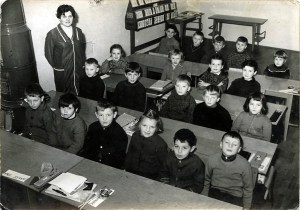 Igavaška šola, prvi razred je učila (takrat še) tovarišica Lavričeva. Zadaj v kotu je stavnica. V razredu so po večini otroci rojeni leta 1961.