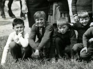 Za učiteljico sta dva kostanja, ki sta danes že precej močna in zaradi obrezovanja dosti nižja. Otroci stojijo na mestu, kjer je danes speljana cesta. Tudi električni drog, ki je viden na skrajni desni, so podrli ob težo dočakani, lani dokončani prometni ureditvi šolske okolice.