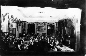 Zadaj za posojilnico na Placu so se zbrali člani družine Ronko. Slika je nastala 8. julija 1928, ko je Tone Ronko z Male gase pel novo mašo.