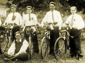 Kako so prišli do koles? Janez Kranjc (Krajnč) se je učil za mizarja v Škofji loki in se je nekoč pripeljal domov s kolesom. Dobški fantje so bili navdušeni in željni takih koles. Da bodo cenejša, jih je nosil iz Škofje loke po delih. Z vlakom do Borovnice in peš do Dobca. Doma so jih sestavili in “uštimali”. |