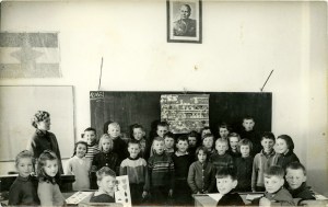 Na tabli smo imeli v levem kotu napisan datum, tako točno vemo, kdaj smo se slikali. Nad tablo visi slika Josipa Broza Tita. Te so bile obešene tudi v drugih javnih prostorih. Na steni je tudi skupinski izdelek razreda – trganka – jugoslovanska zastava. Se še spomnim, da smo jo izdelovali za 29. november, ki je bil takrat velik državni praznik – Dan republike.
