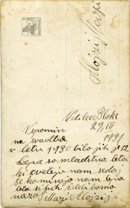 Lojze Mazij, ki leži na desni ob sodu s kozarčkom je na hrbtno stran slike napisal tudi posvetilo temu veselemu dogodku:»Lepa so mladostna leta, ki cvetijo nam sedaj, še ko minejo nam lepa leta, si jih želeli bomo nazaj«.A ne bi bilo škoda, da ne bi bila ta lepa slika objavljena. |