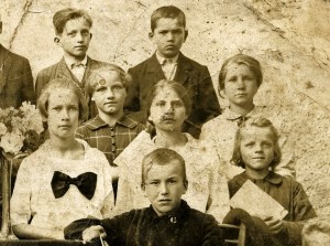 Rad bi samo pripomnil, da tale slika po mojem mnenju nikakor ne spada v leto 1897 ampak najverjetneje nekje okoli1920. (kakšno leto prej ali kasneje) To se da sklepati na podlagi klobuka učiteljice in ene izmed učenk. Obe namreč nosita tako imenovana “cloche” klobuka – izredno popularne zvonačaste kapice, ki so jih dame pri nas nosile predvsem v 20-tih letih.