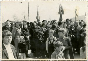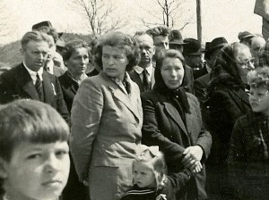 Na svečanost je prišlo veliko število ljudi. Na tej sliki smo (bilo nas je več, ki smo se trudili s prepoznavanjem) prepoznali, da Lidija Lavrenčič stoji levo od moškega v sredini slike. Spodaj desno, oblečen v jopici, pa stoji Ludvik Žnidaršič.