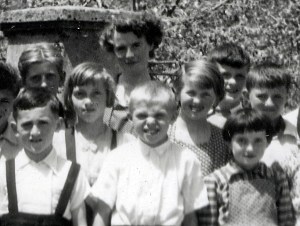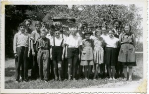 To je še eden izmed spominov na staro šolo v Starem trgu in njeno okolico. Slikali so se v zadnjih, toplejših mesecih šolskega leta, saj je skoraj večina učencev že “na lahko” oblečenih, obdaja jih bujno rastoče drevje sosednjega vrta in travno pobočje Ulake.