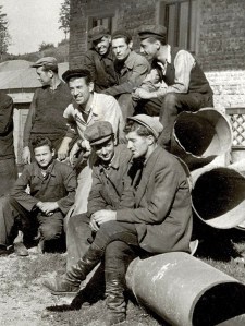 Prva izmena mehanične delavnice Tovarne pohištva Brest Cerknica je za trenutek odložila svoje orodje in se pred zgradbo Obratovodstva postavila pred fotografa. Druga izmena je bila na delu v tovarni Martinjak, kjer je popravljala posledice požara, ki je poleti leta 1954 povzročil veliko škodo.