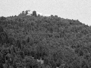 Pred nami so ostrnice obdete z žitom (zdajte sšenico). To je podoba nekega drugega – preteklega časa. Razvoj in napredek sta naredila svoje. Ostrnice z žitom so postavili ob makadamski poti, ki vodi v Podlož. Za njimi se vzpenja Križna gora, na kateri stoji cerkev sv. Križa.