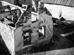 Slika prikazuje pogorišče Bajčkove hiše. Kot mi je povedal znani in priznani cerkniški fotograf Jože Žnidaršič, je hiša porgorela med drugo svetovno vojno ob napadu na Cerknico leta 1943. Takrat so Nemci na Cerknico streljali s kanoni in takrat je tudi pogorel Svinjski Rigl. Jože mi je tudi rekel: “Vidiš, za tem dimnikom sem se pa jaz rodil”. Za dimnikom je bil namreč “štiblc za rojevanje”, kjer so se rodili vsi Bajčkovi otroci.