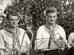 Hvala za vaš popravek pri prvi fotografiji in sledečo dopolnitev o naših “dolinskih muskonterjih”. O tem, da je vaš mož Marjan nadaljeval glasbeno pot v ansamblu me je pred časom seznanil tudi oče, ko mi je pokazal Marjanovo kasnejšo fotografijo iz enega izmed tamkajšnjih nastopov.