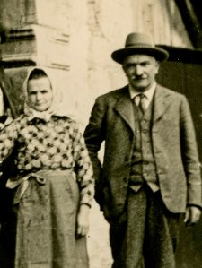 Turšičeva mama Ivana — rojena Kos, po domače Farbarjeva in njen mož, Ivan Turšič — Jurčkov sin. Mama je s predpasnikom, oče Ivan pa v obleki s telovnikom in v klobuku.Fleten otrok na vrhnji sliki je verjetno sosedov Jože Petrovčič — Šrangarjev, rojen leta 1929, saj so si Turšičevi in Šrangarjevi sosedje.Vsa ekipa je bila tudi na čolnu na Cerkniškem jezeru. Fani Povšnar je bila družinska prijateljica Turšičevih. Z možem Janežičem sta stanovala dolgo let na Rakeku, ob železniški postaji, ker je on delal pri železnici. Po upokojitvi sta se preselila spet v Cerknico in sta stanovala pri Zihrletu, zadaj za MM barom. |