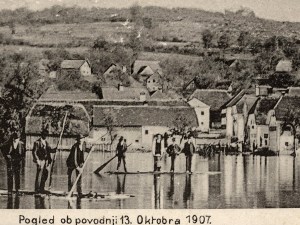 Ohranila se je stara dopisnica, ki prikazuje poplave, ki so bile 13. oktobra, leta 1907.