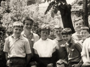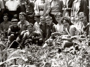 Učenci 7. razreda so slikani na šolskem vrtu.