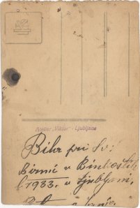 Na zadnjo stran so zapisali:”Bila pri Sv. Birmi v Binkoštih l. 1933. v Ljubljani”.