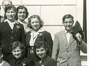 Dijaki četrtega razreda nižje  gimnazije v Cerknici se poslavljajo od šole maja 1958. Učitelji stojijo zadaj.