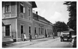 Zadaj levo je napis: Ljubljanska kreditna banka, podružnica Rakek. Cerknica in Rakek sta bila vedno v nekem antagonizmu, nikoli se nista prav dobro razumela. Na Rakeku so imeli banko, pa rampe, pa sodišče, o čemer so Rakovčani govorili, da se o tem Cerkničanom še sanja ne.Pred Domiceljevo hišo stoji moderen luksus avto, kolikor se da razbrati po znaku, je na njem znak Fiat, ki ga je ta avtomobilski koncern uporabljal od leta 1921 dalje.