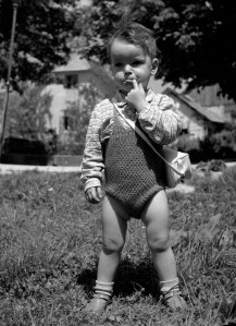 Sem mislila, da je fantek. Ker je Marjanca le kako leto mlajša od mene, se poskušam spomniti, katera punčka na Jezeru bi bila oblečena v hlačke. Prav nobena. Vse smo nosile kiklce.