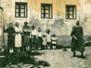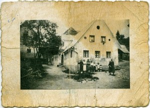 Na tej mali sličici so osebe brez povečave komaj še prepoznavne. Ob ospredju Bločenove hiše so se po velikosti in verjetno tudi po starosti postavili domači z najbližjimi sosedi. Ob desnem vogalu hiše se vidi Štancarjeve svәnske štalce.