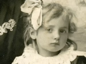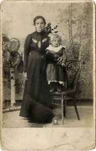 Mici Baraga, Ravne 2, pošta Sveti Vid pri Begunjah, Avstrija, Evropa, je fotografirana s hčerko Ivanko. Fotografija je bila namenjena možu Andreju, stanujočem v Richwoodu Bax 812, W. Va Nort, Amerika. Tako je zapisano na hrbtni strani.