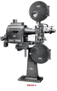 Ernon IV v vsem svojem sijaju: vidimo gornji in spodnji nosilec filmskega koluta – film je tekel z zgornje role skozi vratca in se navijal na spodnjem kolutu. Za oglavjem je prostor z obločnico, ki je dajala močno svetlobo. Upravnik je predvideval nakup v vrednosti 25 – 30.000 din!