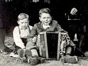 Janko ima v naročju harmoniko, ki je bila last njegovega očeta Lojza. Harmonika je srečno preživela drugo svetovno vojno in sicer tako, da jo je v kleti skril stari Hrenov. Na žalost njen lastnik Lojz ni imel te sreče.