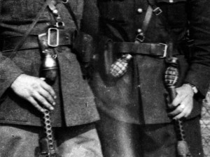 Jelen ima za pasom italijansko bombo in pištolo, njegov tovariš Matko pa dve staro-jugoslovanski, narezani bombi.Te so bile pri partizanih posebej priljubljene, saj so bile neprimerno učinkovitejše od italijanskih, ki so napravile veliko hrupa, a bolj malo škode.  Območje učinkovanja je bilo pri starojugoslovanskih precej večje.