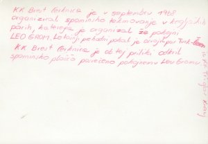 Slika je nastala leta 1968 na Brestovem kegljišču, ko so odkrili spominsko ploščo odličnemu kegljaču Leu Gromu z Rakeka. Spominsko slovesnost je priredil kegljaški klub Brest, katerega član je bil Leo Grom. Grom, ki je bil poprej vsestranski športnik, se je nekaj let pred smrtjo posvetil samo kegljaškemu športu, kjer je kot državni reprezentant in organizator dosegal odlične uspehe. Takrat se je tudi vrnil k matičnemu klubu Brest. Po Gromovi zaslugi se je KK Brest začel močno uveljavljati v republiškem in zveznem merilu.