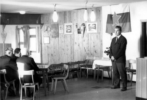 Osebe na sliki so verjetno gostje iz KK Kranj. Zelo navzoc pa je Brestov stol Sardan, ki je bil dolgo let v produkciji.