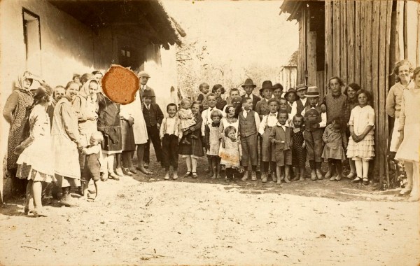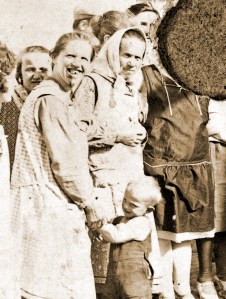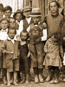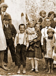 He and another boy are holding toys, which I assume are gifts for this special day. Jože has a balloon or ball with a smiling face printed on it. As purchased toys were few and far between I am sure they were the envy of all the other children, as evidenced by the admiring face of the little girl with the frilly collar.