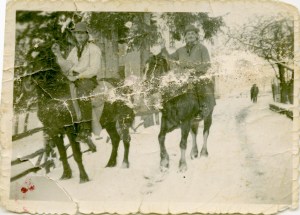 Fotografija prikazuje pustno razpoloženje na Babnem Polju leta 1956, leto gor ali dol.
