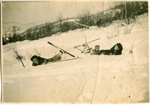 ” V Loški dolini sem bila prvo dekle, ki je smučala v hlačah. Morda se še ne bi poskusila v teh veščinah, ampak sem na srečelovu veselice v Sokolskem domu zadela smučke. To so bile le gole dilce iz Voljčeve delavnice v Starem trgu. Uredit je bilo potrebno le prednji zatič za čevlje, saj je bila peta pri čevlju pritrjena le z navadno vrvico (špago). Palice smo imeli navadne iz leskovih vej. Spuščali smo se od Dolnjih Poljan proti Vrhniki, kjer je bila primerna dolinica za vstavljanje. Proge nismo imeli nič pripravljene. Šlo je kar v celo, vse dokler ni šlo prehitro, ko smo malce zavili v stran in tako upočasnili hitrost. Včasih je uspelo, ali pa smo se predali snežni odeji.”