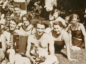 S harmoniko je že zgoraj omenjeni Janez Turšič. Desno od Janeza sedi njegov brat Lojze Turšič. Med njima pa sedi njuna sestra Stana. Čisto na desni pa je najbrž Alojzija Zgonc.Ostalih kopalcev nismo prepoznali.