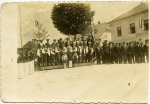 Vidimoi nekaj zastav Kraljevine Jugoslavije. Ena od njih je obešena na drevescu zadaj levo od lipce. Tega drevesa in drevesca levo od lipce do zdaj še na nobeni fotografiji nisem opazil.