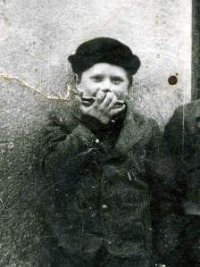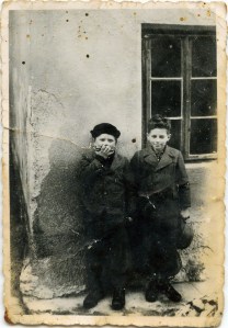 Prijatelja Cibov in Štefetov Janezek z Velike gase sta se potikala po gasi, ko ju je na vogalu hiše ujel neznani fotograf. Toplo oblečena fantiča se kljub mrazu nista dolgočasila na zapečku, ampak sta vedoželjno raziskovala zunanji svet. ____________________________________________________________ Kljub prihajajočim temnim časom je otroška domišljija vedno našla prostor za igro. Najboljši igralni poligon za fantiče na Veliki gasi je bila skladovnica hlodov pred poslopjem sodišča. Sicer pa se je na gasi toliko dogajalo, da ni bilo nikoli dolgčas. Ljudje so prihajali po opravkih v številne obrtne delavnice, gostilne, v Žumrov hotel, k fotografu, v lekarno, na sodišče, pa v cerkev in na plac na razne prireditve in sejme… Po vojni, ko se je veliko prvotnih prebivalcev razselilo z Velike gase, je tu našla prostor za igro nova generacija otrok, ki jim je bila najljubša igra v stavbi porušenea sodišča, od skrbnih mater sicer najstrožje prepovedana zaradi številnih nevarnosti. ____________________________________________________________