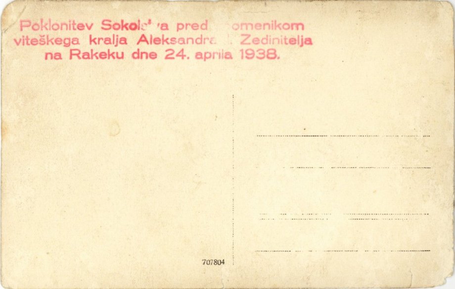 1938 Rakek – Spomenik kralja Aleksandra
